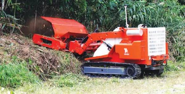 雷場清障車,是通過遙控操作的。具有在坡度小于40°的山地進行清障排爆作業(yè)的功能。該車具有較強的爬坡能力,操作手可以在1000米范圍內實施無線遙控控制,完成掃除淺層防步兵地雷、清除灌木叢和鏟運樹木等任務,以電錘擊爆地雷手雷等未爆炸物品,這期間即使產生爆破碎片或者沖擊波都不會對操作員構成危險。