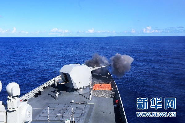“嘭嘭嘭——”率先開火的是長(zhǎng)沙艦。不到一分鐘后,??谂炓查_始了射擊。此起彼伏的炮聲,讓平靜的大洋瞬間彌漫著硝煙的味道。