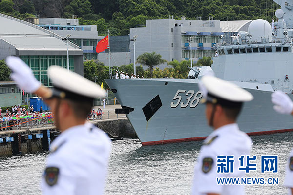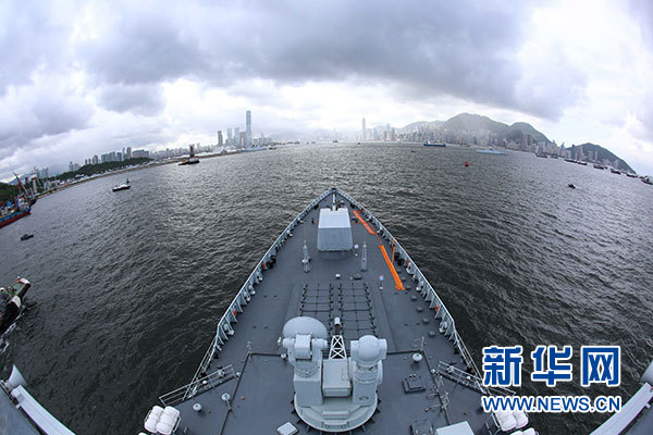 7月7日,海軍銀川艦駛?cè)胂愀郯捍薮a頭。當(dāng)日,正在執(zhí)行跨區(qū)機(jī)動訓(xùn)練任務(wù)的中國人民解放軍海軍航母編隊(duì)抵達(dá)香港,參加香港回歸祖國暨中國人民解放軍進(jìn)駐香港20周年慶祝活動,受到香港特區(qū)政府和民眾熱烈歡迎。新華社記者 曾濤 攝