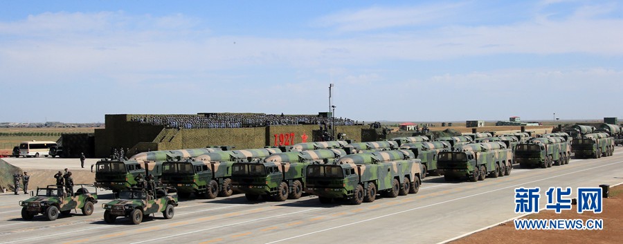 7月30日,慶祝中國人民解放軍建軍90周年閱兵在位于內(nèi)蒙古的朱日和訓(xùn)練基地舉行。中共中央總書記、國家主席、中央軍委主席習(xí)近平檢閱部隊(duì)并發(fā)表重要講話。這是核導(dǎo)彈方隊(duì)。新華社記者 查春明 攝