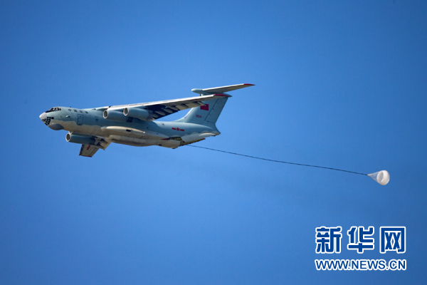 8月4日,中國空軍伊爾-76戰(zhàn)機(jī)在“航空飛鏢”靶場開放日進(jìn)行重裝空投。新華社發(fā)(楊盼 攝)
