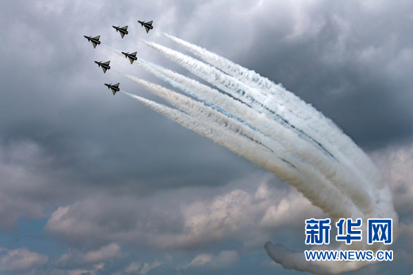 8月4日,中國空軍八一飛行表演隊(duì)亮相“航空飛鏢”靶場開放日。新華社發(fā)(楊盼 攝)