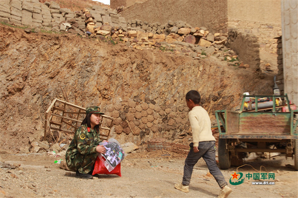 在外面玩耍的大多杰看到邊防媽媽黃曉娟,忍不住小跑了過(guò)去。
