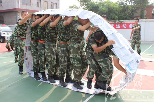 圖為官兵進(jìn)行“坦克戰(zhàn)車”競(jìng)速賽