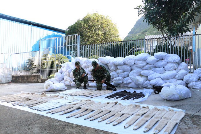 ????該支隊(duì)獲得情報(bào)后成立專(zhuān)案組,在轄區(qū)展開(kāi)排查。其間,發(fā)現(xiàn)龍邦鎮(zhèn)一車(chē)輛裝載可疑涉私貨物,待其裝載完畢后,隨即追蹤該車(chē)。行駛中,該車(chē)從小路繞過(guò)邊防執(zhí)勤點(diǎn)和檢查站。歷經(jīng)兩個(gè)多小時(shí)追蹤后,專(zhuān)案組截停該車(chē),當(dāng)場(chǎng)查獲無(wú)合法手續(xù)貂皮80多件5200多張。