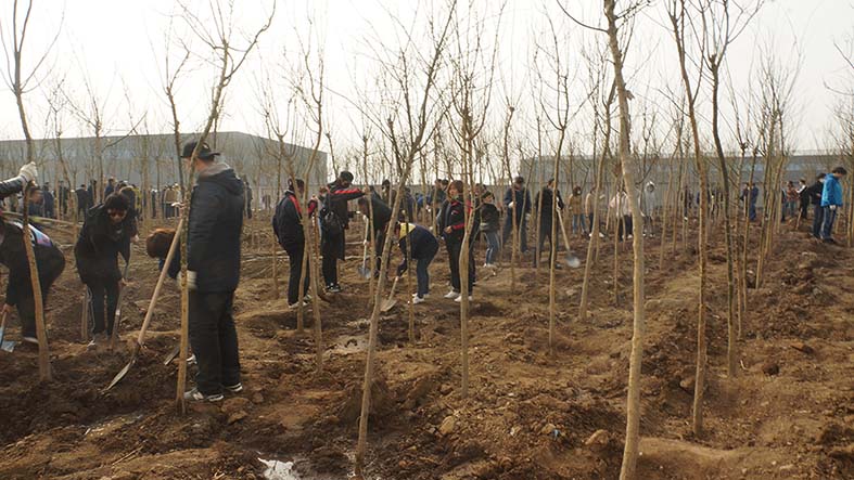 全體參加植樹活動的員工準(zhǔn)時到位,在結(jié)束了短暫的人員組隊,劃分區(qū)域和領(lǐng)取工具等準(zhǔn)備工作后,迅速的投入到植樹活動當(dāng)中。各小組成員分工明確,積極踴躍。很多隊伍在組長的帶領(lǐng)下,領(lǐng)樹苗、放樹苗、填土、培土、澆水相互配合,干得熱火朝天。許多小組高效率高質(zhì)量的完成本隊植樹任務(wù)后,迅速投入到其他隊伍中,互幫互助。在全體員工有組織有紀(jì)律的高效協(xié)作的前提下,在不到兩個半小時的時間內(nèi),共計完成1800棵樹苗的栽種工作,綠化面積達(dá)12000多平方米。此次植樹活動,進(jìn)一步改善了控感廠區(qū)的生產(chǎn)環(huán)境,把原本空曠的廠區(qū)西南角的一片空地裝點得煥然一新!