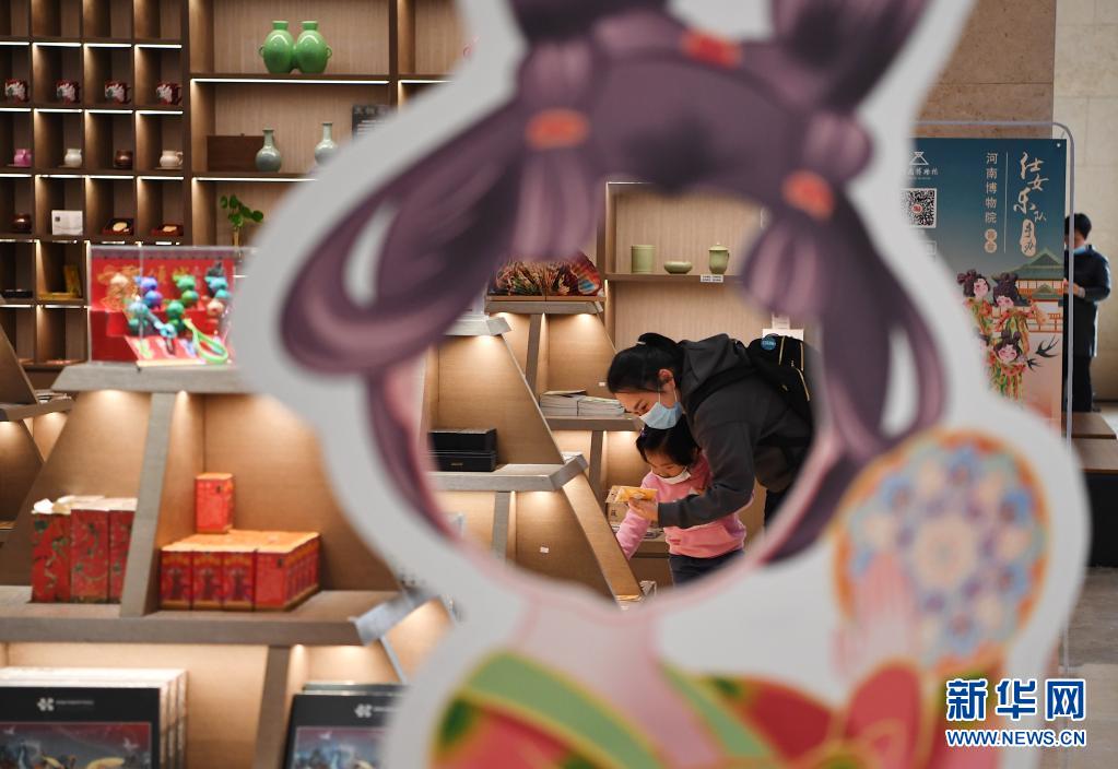 4月5日,參觀者在河南博物院選購文創(chuàng)產(chǎn)品。