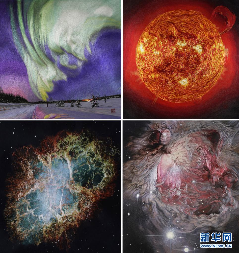 這是陳英華“星空系列”的部分蘇繡作品(拼版照片)。新華社發(fā)
