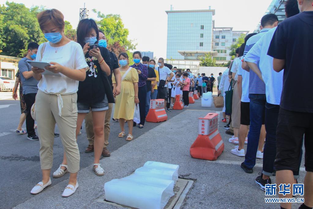 江蘇省南京市于7月21日開(kāi)始對(duì)全市常住人口、外來(lái)人員開(kāi)展全員核酸檢測(cè)。目前正值盛夏,氣溫較高,在南京市第一醫(yī)院河西院區(qū)核酸檢測(cè)點(diǎn),工作人員專(zhuān)門(mén)為排隊(duì)等候的市民準(zhǔn)備了冰塊降溫。