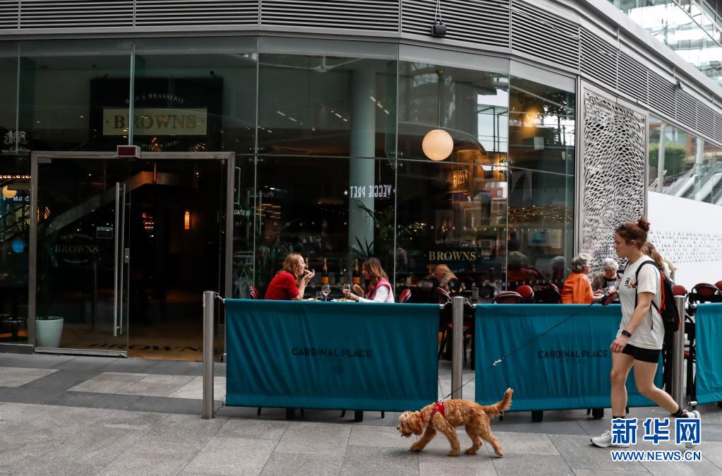 7月26日,人們坐在英國倫敦維多利亞一家餐廳的戶外餐飲區(qū)。