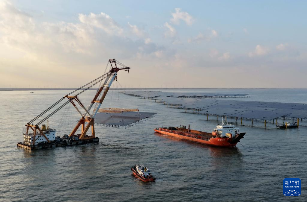 河北昌黎:海上光伏电站项目建设正酣-新华网