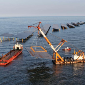 近日,中国华电集团有限公司河北分公司在河北省昌黎县海域投资建设的河北省海上光伏电站试点项目,正在按照节点要求扎实推进。据介绍,该项目装机容量465.6兆瓦,建成并网投运后,将为推动海洋经济高质量发展,落实“双碳”目标注入强劲动能。