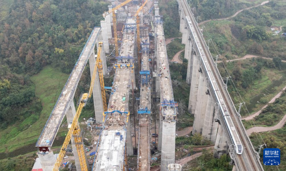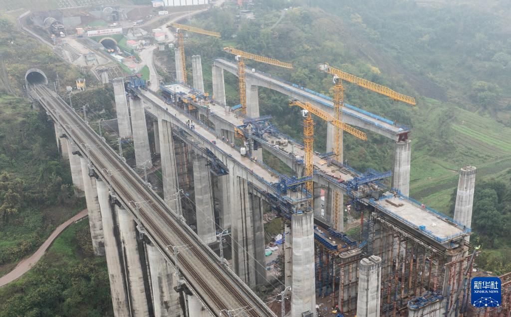 渝万高铁打青沟左线大桥连续梁顺利合龙-新华网