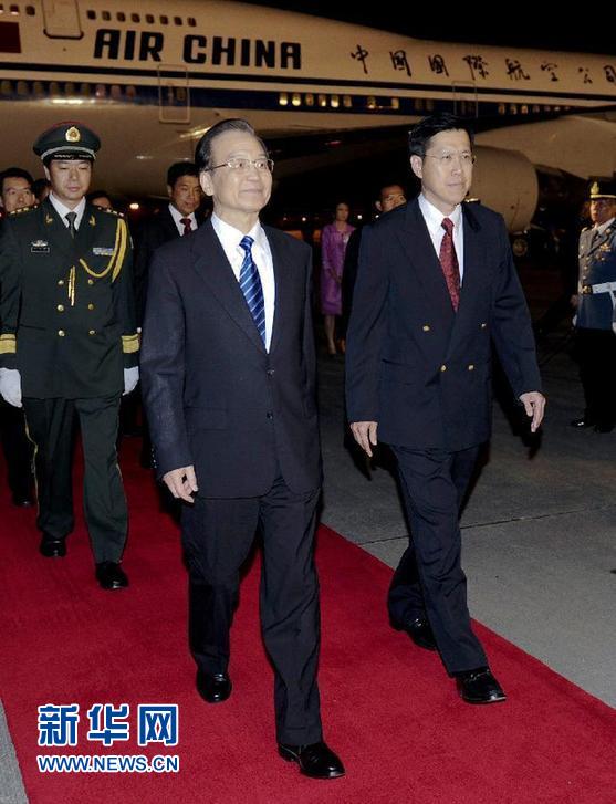 當晚,溫家寶抵達泰國首都曼谷,泰國副總理蓬貼、中國駐泰國大使管木等到機場迎接。