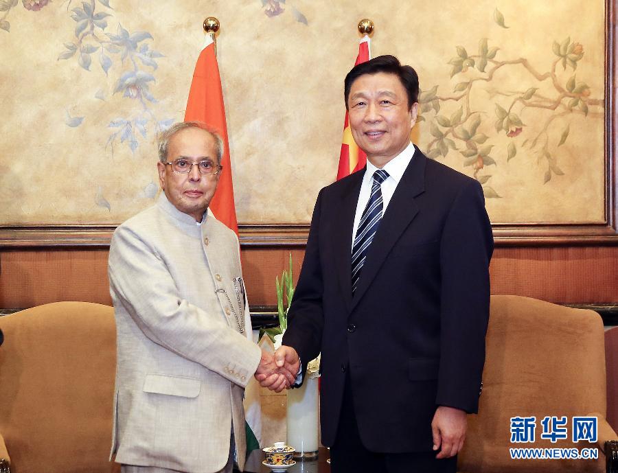 ??? 5月25日,國(guó)家副主席李源潮在北京會(huì)見(jiàn)印度總統(tǒng)慕克吉,共同出席由中國(guó)人民對(duì)外友好協(xié)會(huì)和印度駐華大使館舉辦的歡迎招待會(huì)。 新華社記者丁林 攝