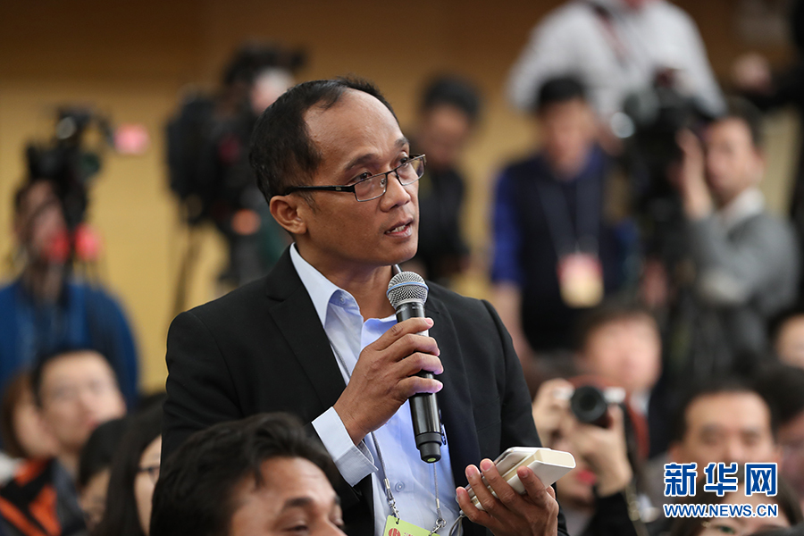 十二屆全國(guó)人大五次會(huì)議新聞中心于3月8日(星期三)10時(shí)在梅地亞中心多功能廳舉行記者會(huì),邀請(qǐng)外交部部長(zhǎng)王毅就“中國(guó)的外交政策和對(duì)外關(guān)系”的相關(guān)問(wèn)題回答中外記者的提問(wèn)。圖為菲律賓通訊社記者提問(wèn)。新華網(wǎng)/中國(guó)政府網(wǎng) 翟子赫 攝