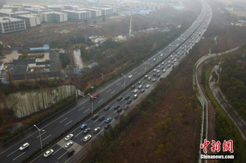 資料圖:2月21日,大批車(chē)輛由北向南緩慢行駛在南京二橋高速公路上,綿延數(shù)公里。 中新社記者 泱波 攝