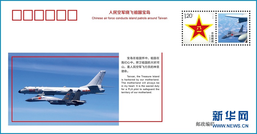 這是《人民空軍繞飛祖國寶島》紀(jì)念封。 4月28日,一套7枚《人民空軍繞飛祖國寶島》紀(jì)念封和一套《戰(zhàn)神巡航寶島》多方言、多語種宣傳片在福建發(fā)布,彰顯了人民空軍捍衛(wèi)國家主權(quán)和領(lǐng)土完整的意志能力。新華社發(fā)