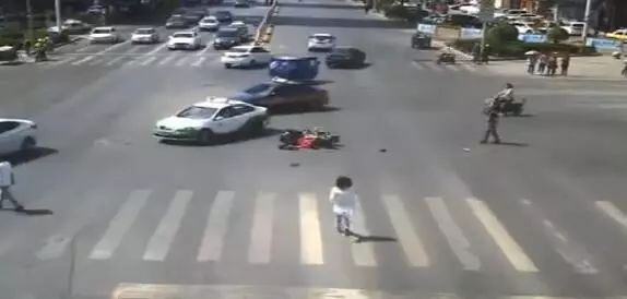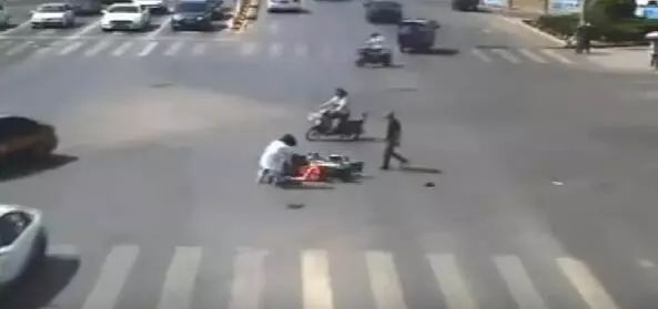 騎摩托車的男子當(dāng)場(chǎng)倒地