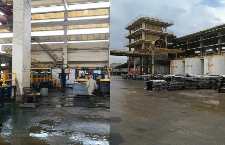 圖3 電解車間高濃度電解廢水灑落地面(左圖),違規(guī)將沾染高濃度重金屬廢水的電解板露天堆放(右圖)