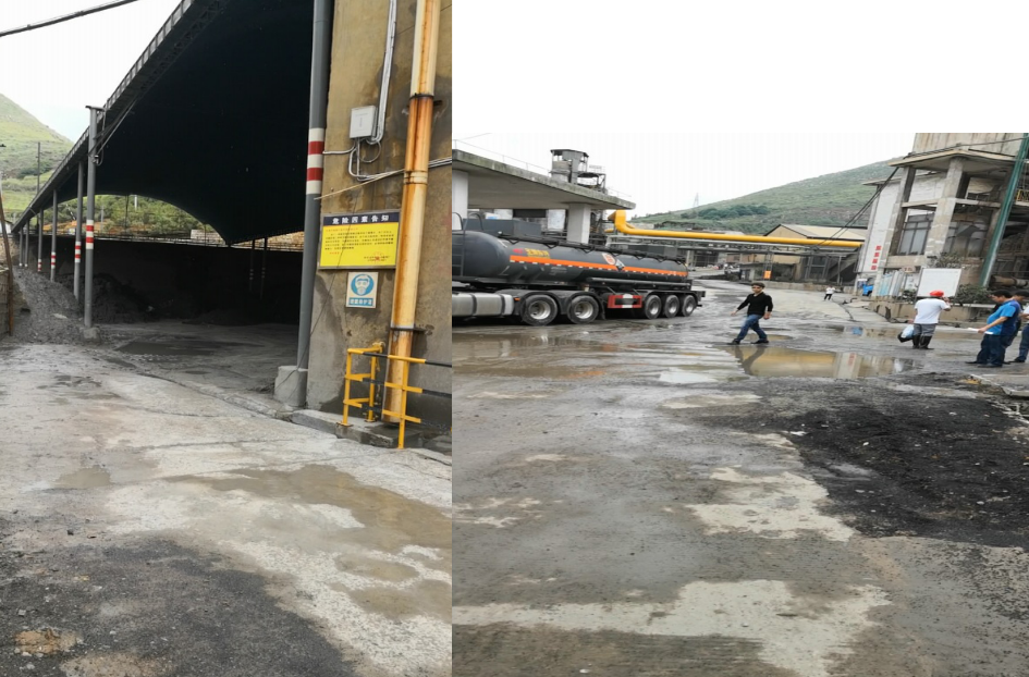 廠區(qū)沒有建設(shè)初期雨水收集系統(tǒng)?,F(xiàn)場檢查時(shí)正值雨后,地面散落的含重金屬廢渣、粉塵經(jīng)雨水沖刷進(jìn)入雨水溝,最終匯入廠區(qū)低洼處。但由于收集池容積小,大量雨水混著含有重金屬的污水溢流至廠區(qū)道路,廠區(qū)污水橫流。
