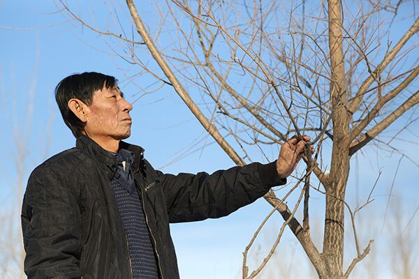 那年,董福財病重,他讓兒子開車?yán)谶@片山林里轉(zhuǎn)了好幾圈。當(dāng)看到自己栽的那片樹時,身上病痛,臉上卻露出了微笑。臨終前,他依依不舍地對妻子說,“我死了,一定把我埋在咱們村林子里,我要天天看著這些樹?!?/p>