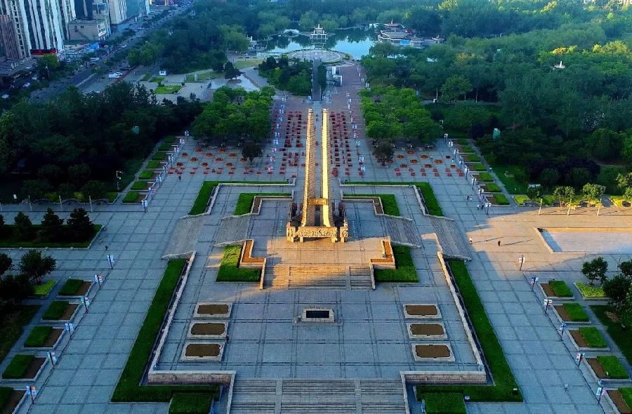 這是2017年5月25日拍攝的唐山抗震紀(jì)念碑廣場(chǎng)。新華社記者 牟宇 攝