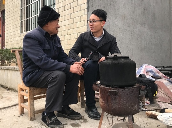 圖為2017年農(nóng)歷臘月27,梁建強(qiáng)(右)在湖北崇陽(yáng)走訪貧困戶(hù)。