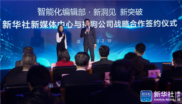 2月19日,新華社聯(lián)合搜狗公司在京發(fā)布全新升級的站立式AI合成主播并推出全球首個(gè)AI合成女主播。圖為發(fā)布會現(xiàn)場。新華社記者 金立旺 攝