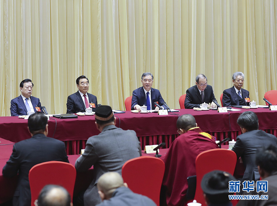 3月4日,中共中央政治局常委、全國政協(xié)主席汪洋看望出席全國政協(xié)十三屆二次會議的宗教界委員并參加討論。 新華社記者 姚大偉 攝