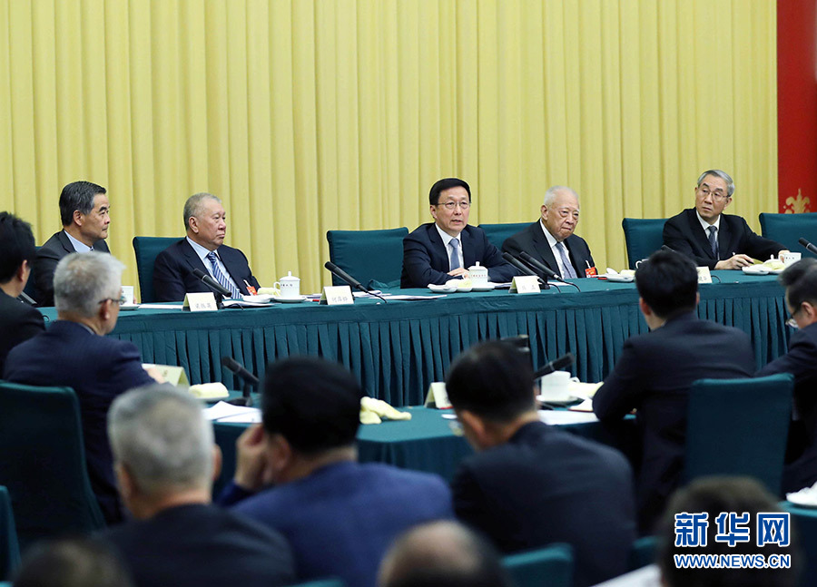 3月4日,中共中央政治局常委、國務院副總理韓正看望出席全國政協(xié)十三屆二次會議的港澳地區(qū)全國政協(xié)委員并參加討論。 新華社記者 劉衛(wèi)兵 攝