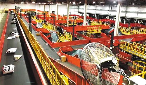 上圖 順豐速運(yùn)采用雙層自動分揀系統(tǒng),大大提高電子單識別效率。