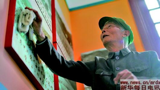 3月27日,程樟柱在紀(jì)念館內(nèi)擦拭介紹烈士事跡的展板。