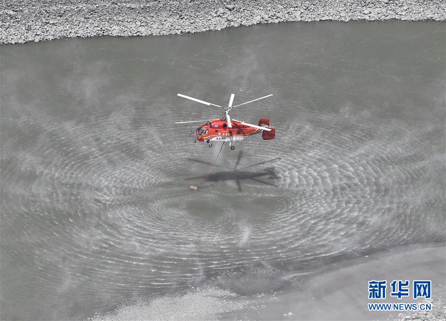 4月2日,救援直升機(jī)在火場(chǎng)附近河道內(nèi)取水,準(zhǔn)備進(jìn)行空中滅火工作。新華社記者 劉坤 攝