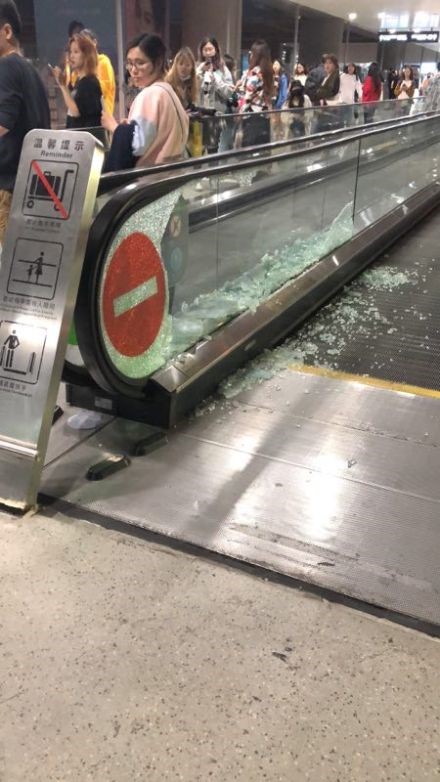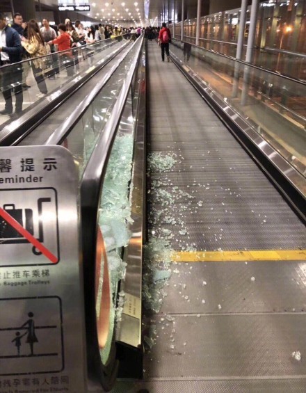 從許多微博大V和網(wǎng)友貼出的“受傷”步行自動(dòng)扶梯照片來看,步行扶梯玻璃護(hù)欄碎了一地,一旁正是人山人海的接機(jī)粉絲。