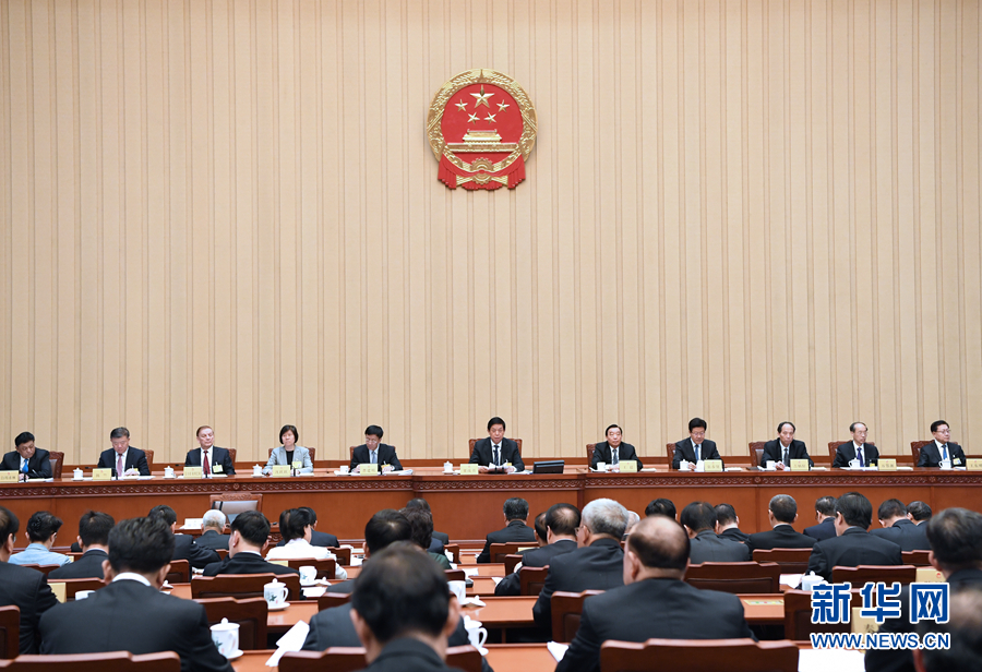 4月23日,十三屆全國人大常委會(huì)第十次會(huì)議在北京人民大會(huì)堂閉幕。栗戰(zhàn)書委員長主持會(huì)議。新華社記者 饒愛民 攝