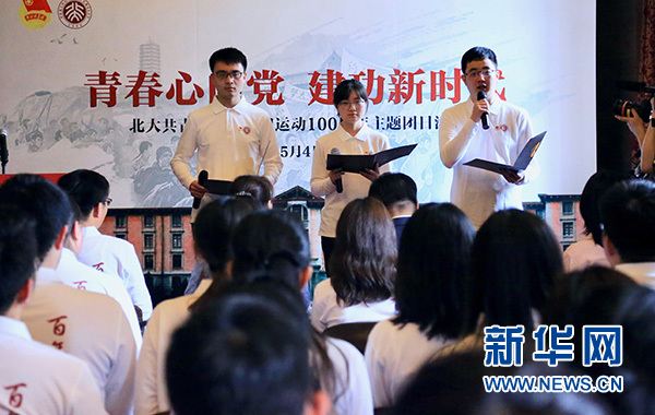 新華網(wǎng)北京5月4日電(潘子荻)“青春心向黨 建功新時代”北大共青團紀念五四運動100周年主題團日活動4日在北京大學(xué)紅樓舉行。