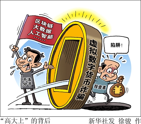 虛擬數(shù)字貨幣、區(qū)塊鏈、大數(shù)據(jù)、人工智能……近幾年流行起來的“高大上”新名詞,被一些不法分子“盯上”,包裝成了一個(gè)個(gè)騙局。湖南衡陽公安機(jī)關(guān)日前破獲一起以虛擬數(shù)字貨幣為幌子的網(wǎng)絡(luò)詐騙案,涉案金額達(dá)3億余元,截至目前已有23人被刑事拘留。虛擬數(shù)字貨幣詐騙案的背后,隱藏著不少騙人的“套路”,應(yīng)引起警惕。有專家建議,對(duì)于這類新興金融投資領(lǐng)域,還應(yīng)加強(qiáng)誠信建設(shè)和規(guī)則制定。