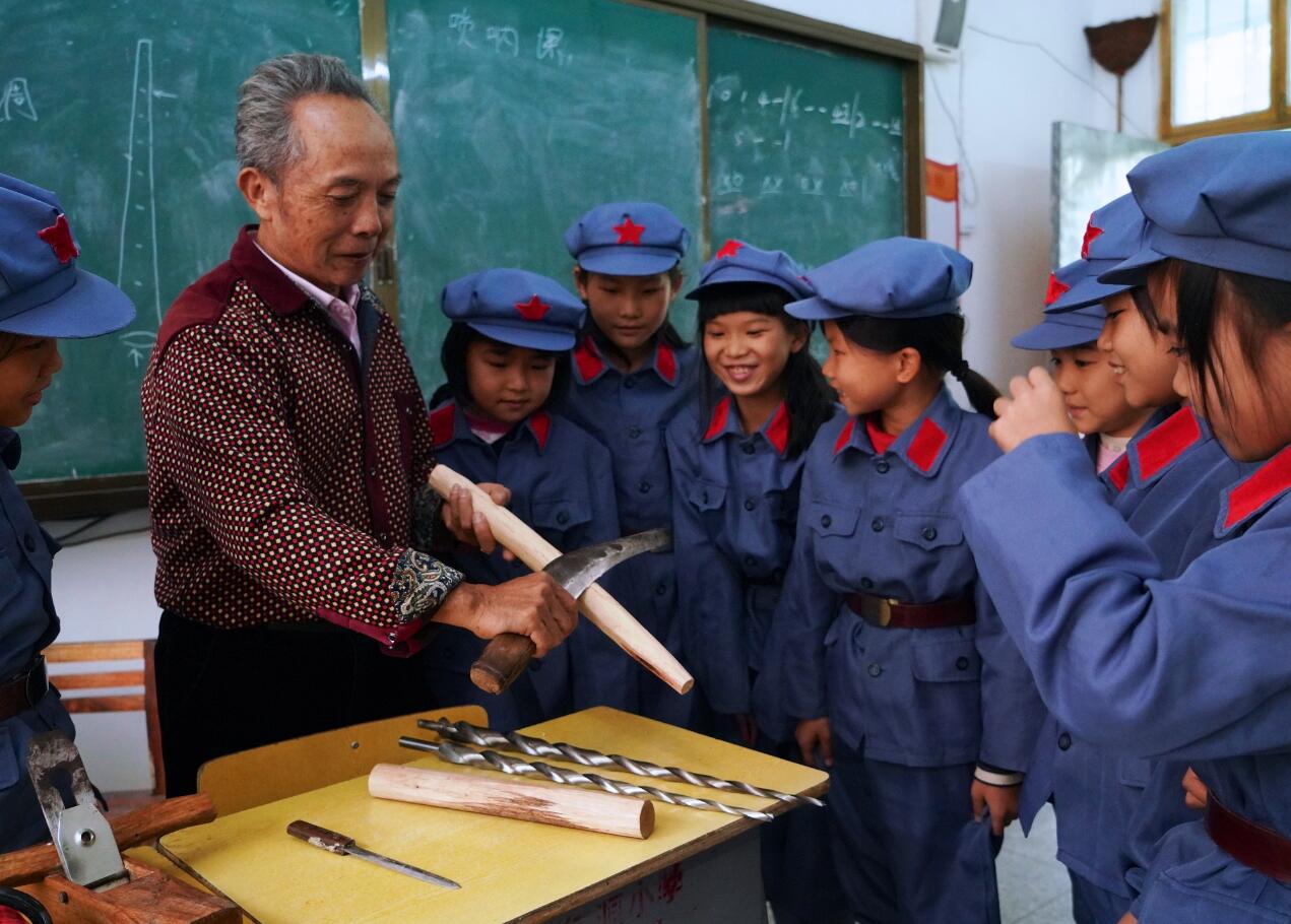 江西省于都縣長(zhǎng)征源小學(xué)邀請(qǐng)國(guó)家級(jí)非物質(zhì)文化遺產(chǎn)項(xiàng)目——于都嗩吶“公婆吹”藝術(shù)傳承人肖卿華和徒弟來校,現(xiàn)場(chǎng)演示嗩吶制作過程以及吹奏技巧,讓學(xué)生們近距離領(lǐng)略傳統(tǒng)文化的獨(dú)特魅力。