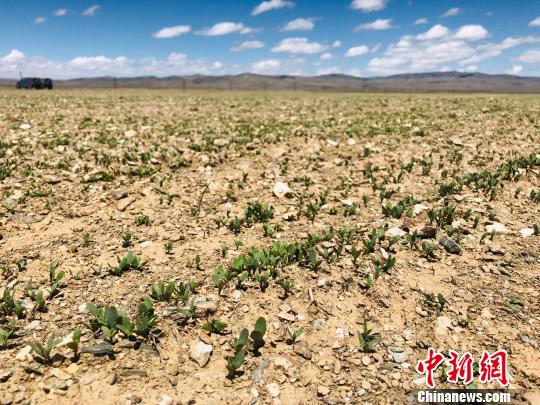 從曲麻萊縣城一路顛簸、跋山涉水6個(gè)小時(shí),曲麻萊縣麻多鄉(xiāng)黨委書(shū)記洛周江措帶著記者來(lái)到了已經(jīng)種植兩年的10萬(wàn)畝中藥種植基地。這里,曾經(jīng)是10萬(wàn)畝已經(jīng)嚴(yán)重沙化的草場(chǎng)。因?yàn)橥恋厣郴瘒?yán)重,全鄉(xiāng)接近70%的牧戶都外遷到了格爾木和稱多縣的清水河鄉(xiāng)等地。