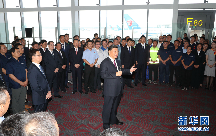投運儀式在機場聯(lián)檢大廳舉行。11時許,伴隨著歡快的迎賓曲,習(xí)近平等步入儀式現(xiàn)場,全場起立鼓掌。