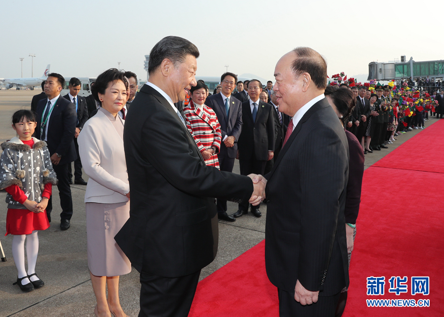 12月20日,中共中央總書(shū)記、國(guó)家主席、中央軍委主席習(xí)近平圓滿(mǎn)結(jié)束在澳門(mén)的各項(xiàng)活動(dòng),從澳門(mén)乘專(zhuān)機(jī)返回北京。這是歡送儀式上,習(xí)近平同前來(lái)送行的澳門(mén)特別行政區(qū)行政長(zhǎng)官賀一誠(chéng)握手。 新華社記者 鞠鵬 攝