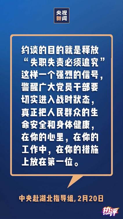 四是直接督促檢查一線黨政干部在疫情防控中的作為。既要進行指導(dǎo),也要加強督查——這是習近平總書記對中央指導(dǎo)組提出的要求。連日來,中央指導(dǎo)組深入一線督查、督辦,發(fā)現(xiàn)問題后對有關(guān)市區(qū)負責人開展約談并曝光,還深入核查解決群眾反映的突出問題。之前公眾普遍關(guān)注的黃岡“一問三不知”干部被問責、武漢市區(qū)領(lǐng)導(dǎo)因轉(zhuǎn)運病人不力被約談等,都在此列。
