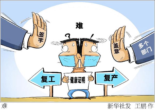 根據(jù)中央部署,全國不少地方在嚴(yán)抓疫情防控的基礎(chǔ)上,正逐步開展復(fù)工復(fù)產(chǎn)。“新華視點(diǎn)”記者接到一些群眾和企業(yè)反映,返程上班和恢復(fù)生產(chǎn),在辦理相關(guān)證明過程中遭遇不少形式主義的煩惱。
