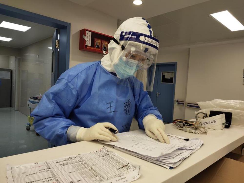 ?圖為北京大學(xué)人民醫(yī)院馳援武漢醫(yī)療隊的王毅在工作中。