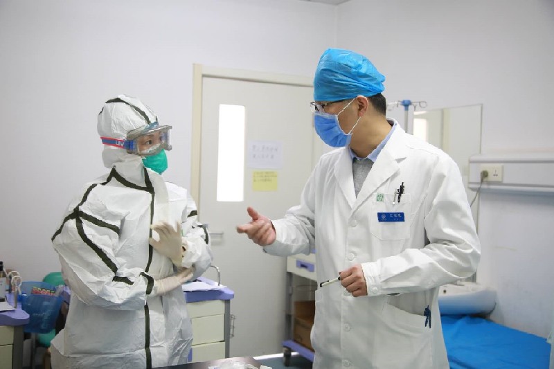 作為科主任,王凌航除了以身作則之外,還做了大量心理疏導(dǎo)工作?!斑€有護(hù)士防護(hù)問題,我告訴她們,采集鼻咽拭子標(biāo)本時,側(cè)著點(diǎn)兒身子?!弊鳛閭魅静<?,在健康科普宣傳的“戰(zhàn)場”上,基層單位督導(dǎo)工作現(xiàn)場中,院內(nèi)會診、危重癥患者查房討論中,到處可見他忙碌的身影。