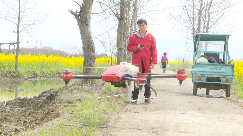 在柴桑區(qū)曹氏家庭農(nóng)場(chǎng),農(nóng)場(chǎng)主曹敬民正熟練地操作植保無(wú)人機(jī)。曹敬民告訴記者,這次疫情對(duì)農(nóng)場(chǎng)生產(chǎn)影響較小,通過政府信息化平臺(tái)和農(nóng)技專家的幫扶支持,對(duì)今年農(nóng)場(chǎng)增收充滿信心。