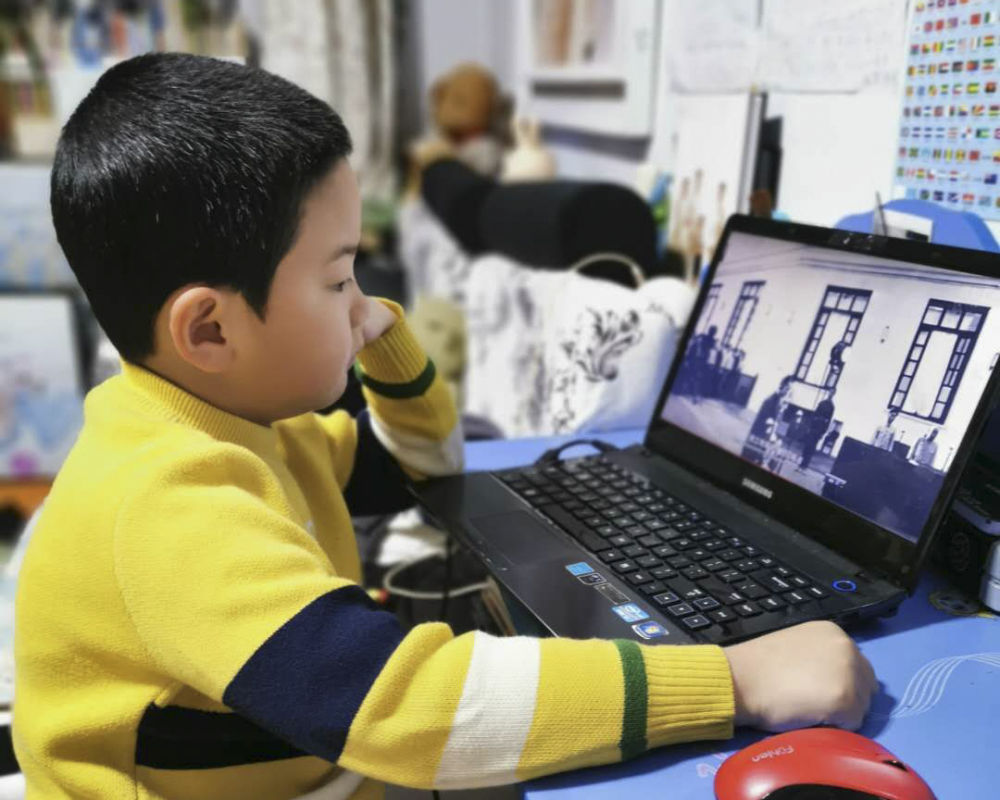 因?yàn)橐咔椤罢摇鄙暇W(wǎng)課的中小學(xué)生,