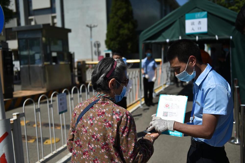 5月11日,在北京市海淀區(qū)的北京市十一學(xué)校龍樾實(shí)驗(yàn)中學(xué),初三年級(jí)學(xué)生進(jìn)入學(xué)校前掃描“健康碼”。新華社記者?任超?攝