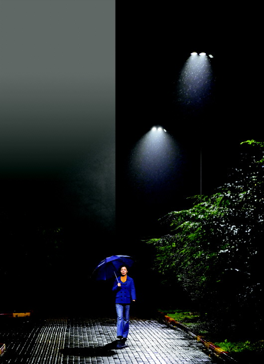 席蔚菁晚上在校園里巡查。新華社記者劉軍喜攝